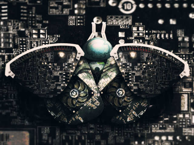 Moth constructed from photos of computer hardware